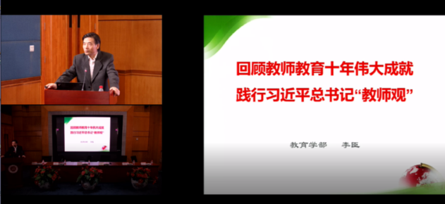 讲座开场,李臣首先引领大家观看了一个短视频《习近平的教师情》,让大家深刻体会到近十年来习近平总书记对教育、教师以及教师教育工作的高度重视,同时也回顾了近十年中国教育取得的伟大成就。回望这十年,中国教育普及水平实现历史性跨越;更好地保障了人民受教育机会,有效缓解了群众急难愁盼问题教育服务能力稳步提升;健全了党对教育全面领导的体制,统筹推进了大中小学思政课一体化建设,把“劳”纳入了党的教育方针;极大地推动了内地(大陆)与港澳台教育交流,支持港澳台青少年融入国家发展大局。