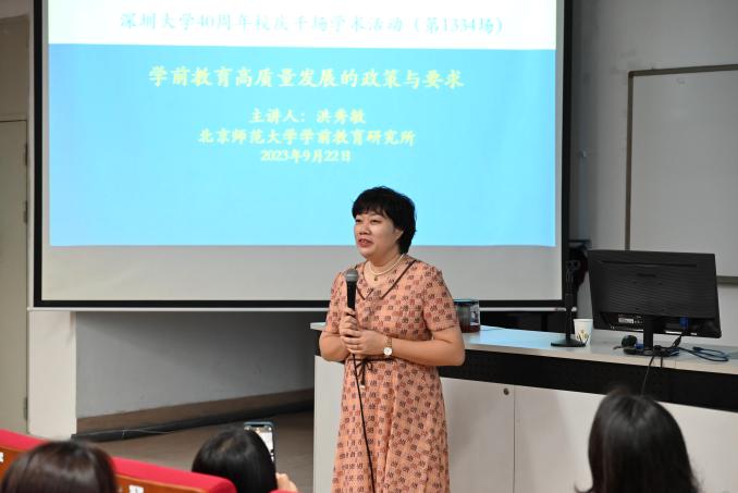 讲座中洪秀敏教授指出,当前中国学前教育实现了公益普惠的跨越式发展,已经从以规模扩张和空间拓展为特征的外延发展转变成以提高质量和优化结构为核心的内涵发展,高质量学前教育应具备高效益、现代性、适应性、人民性和强约束等特点。随后,洪教授介绍了当前学前教育高质量发展的目标与任务,即有效增加普惠性学前教育资源,完善经费保障机制,建设高素质幼儿教师队伍以及深化新时代幼儿身心发展特点与规律研究等。最后,洪教授认为,推进教育公平,增加普惠性资源供给时也应充分考虑出生人口变化,以及合理制定县(区)普惠性幼儿园的布局规划,并阐述了当前学前教育法颁布的必要性和迫切性,重申了学前教育政策研究的发展与价值取向,如需要始终坚持对国家重大政策的呼应,服务于时代与社会变革的需求等。