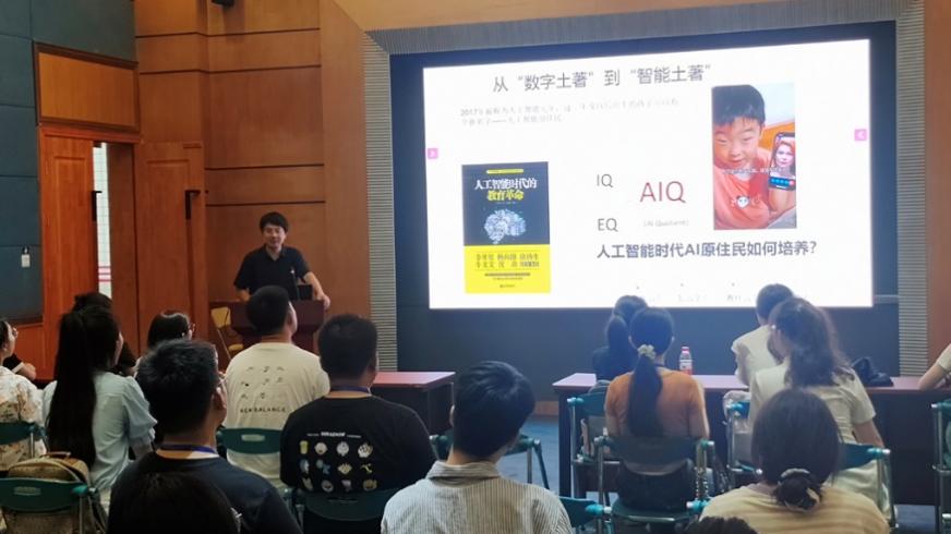 副主任、教育技术学专业方向负责人曹晓明带来《人工智能赋能教育改革与教师发展》的专题讲座。他指出人工智能技术的迅猛发展,推动教育体系由单一体系向“AI双师”的转型,同时也不断对教师的个人素质提出更高的要求。