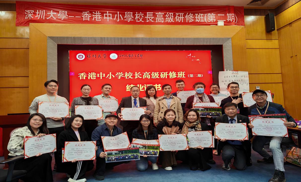 12月19日下午,研修班举行了简单而隆重的结业仪式,李臣参加了结业仪式。学员们精心制作了短视频,回顾了精彩的研修活动过程,表达了此次培训的收获和喜悦。来自香港道慈佛社杨日霖纪念学校的李为贤校长作为香港代表发言,满怀深情地分享自己在研修期间的深刻感悟。她表示,此次研修活动犹如一场及时雨,滋润了她在教育理念和管理方法上的思考土壤,使她对香港学校教育的发展有了更为清晰的方向。李臣为学员们颁发结业证书和优秀证书,并对参训校长们的积极参与、认真学习、互动交流给予了高度评价,期待粤港校长们在未来的教育工作中结合所学知识技能,为推动文化传承和粤港两地交流融合贡献智慧和力量。