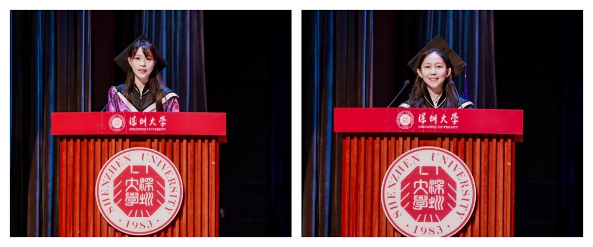 学前教育(师范)专业本科生党员陈慧葶作为毕业本科生代表发言。她谈及四年来对师范生“修养”的感悟——勤学思考,用知识的力量武装自己;慎思明辨,用理性的思考洞察真理;笃行求实,带着思考在各领域诠释对教育的理解。
