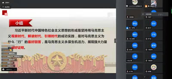 讲座结束前,李均主任与同学们进行互动交流,同学们反应热烈,并热情感谢李均主任的精彩讲解。通过回顾党的百年奋斗历程与马克思思想中国化历程,同学们从中汲取了强大的精神力量,更加坚定了跟党走中国特色社会主义道路的信心和决心,不断努力成长为习近平新时代中国特色社会主义思想的坚定信仰者和忠实实践者。