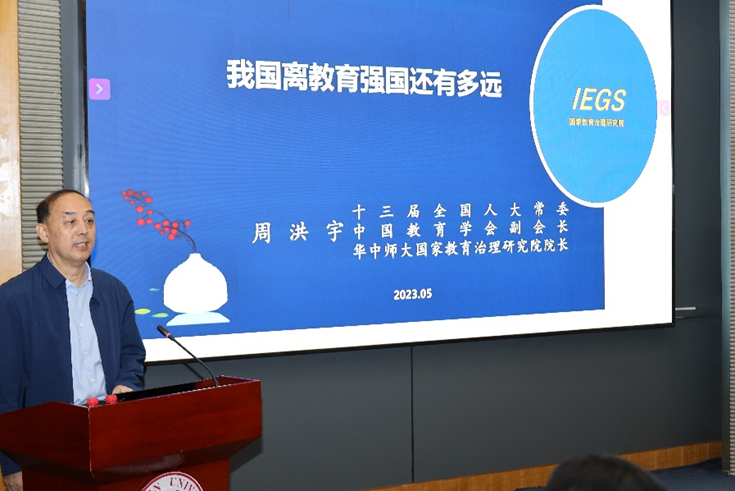 讲座伊始,周洪宇教授指出,教育在社会主义现代化强国建设和中华民族伟大复兴征程中肩负着重要使命。在此基础上,周洪宇教授明确了教育强国的内涵,他认为,可将“教育强国”这一概念界定为:教育综合实力、教育创新能力、人才培养和教育服务贡献能力、教育治理能力、教育国际竞争力和教育影响力强大且显著的国家。