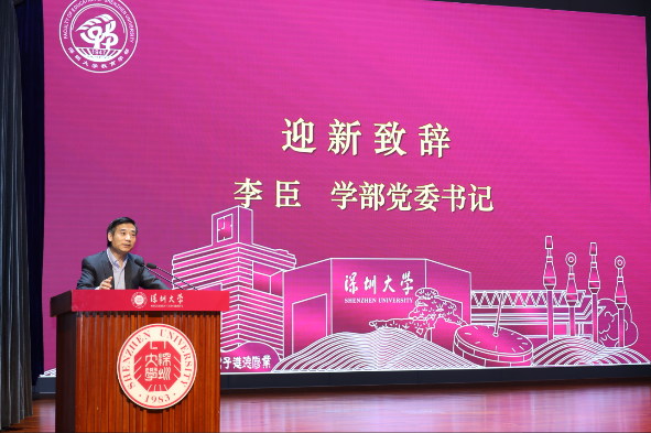 主任靳玉乐,党委书记李臣,执行主任李均,党委副书记吴长贤,副主任赵明仁、曹晓明、李鹏虎,各院系各职能部门负责人,各党支部书记以及2023级全体新生出席大会。大会由吴长贤主持。