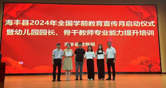 教师培训基地”牌匾。 接着,几位在主席台就坐的领导领导共同点亮启动器,海丰县教育局局长李建生宣布海丰县2024年全国第13个学前教育宣传月活动及幼儿园园长、骨干教师专业能力提升培训班正式启动。